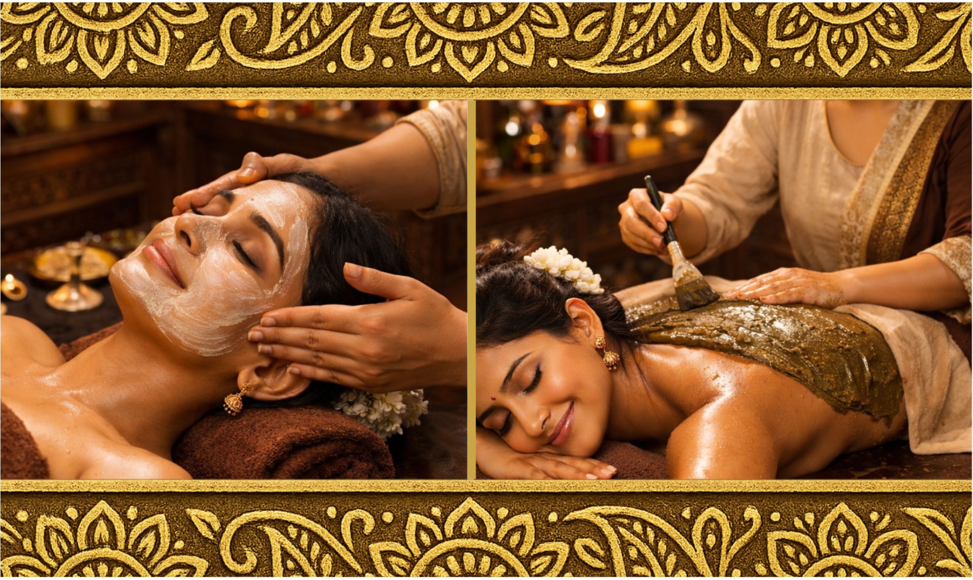 Kosmetická péče tvořena 10ti krokovým systémem, díky kterému pleť získá vše, co potřebuje – včetně dvou masek. Péče zahrnuje ruční hloubkové čištění, barvení obočí a depilaci dle potřeby. Následuje mukhabhyanga – tradiční ayurvédská masáž obličeje se stimulací marmových bodů.